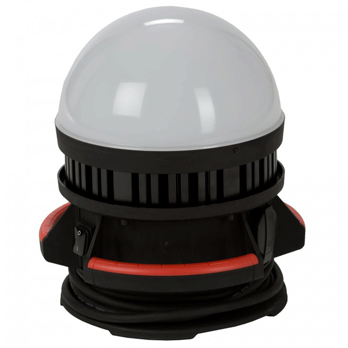 Projecteur portable de chantier  à LED 100W sur câble CEBA. En forme de dôme ce projecteur permet une diffusion en 360°. Il est possible aussi grâce à son crochet de suspension être adapté sur un pied télescopique.