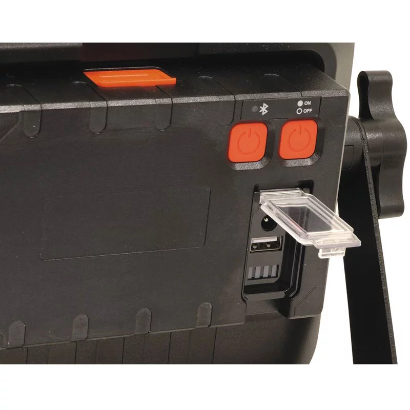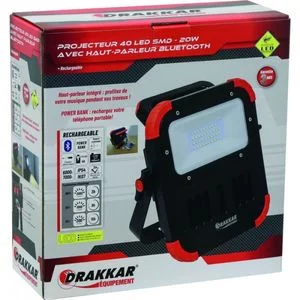Projecteur LED avec haut parleur intégré. Profiter de votre musique pendant vos travaux! Projecteur équipé de la fonction power bank, d’une poignée support articulée, un indicateur du niveau de charge. Projecteur de très bonne qualité qui résiste aux chutes jusqu’à 2 mètres.