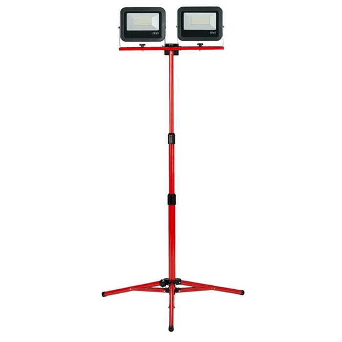 Le trépied télescopique réglable permet de positionner le projecteur à différentes hauteurs. Offrant ainsi une flexibilité optimale pour diriger la lumière exactement là où elle est nécessaire. Le trépied est robuste et stable, assurant que le projecteur reste en place même sur des surfaces inégales.