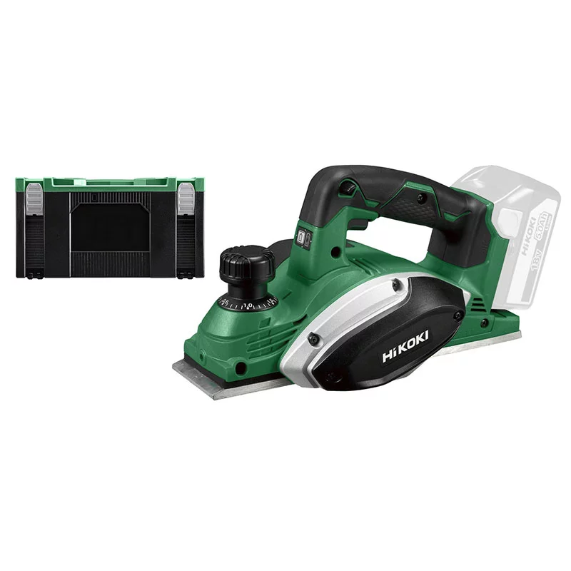 Rabot 18 V HIKOKI, feuillure jusqu’à 9 mm. Grande capacité avec une largeur de coupe 82 mm et une profondeur jusqu’à 2 mm. Réglage facile & précis de la profondeur. Compact et ergonomique avec une poignée soft grip. Cale rétractable, évite aux lames d’être en contact sur le support. Possibilité fixation sac a poussière ou raccordement a un aspirateur. Vendu sans batterie ni chargeur.