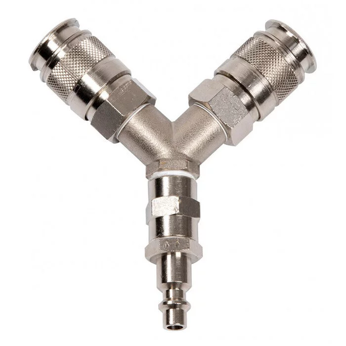 Fabriqué en métal robuste pour garantir une résistance accrue à l’usure et aux pressions élevées. Fabriqué en métal robuste pour garantir une résistance accrue à l’usure et aux pressions élevées. Raccord double pneumatique Y KSTOOLS