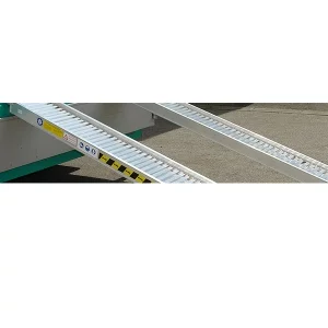Paire de rampe de chargement sans bord. Rampe de chargement avec surface antidérapante. Section des profilés renforcés, légères très résistantes grâce à sa conception en aluminium et sécurisé grâce à son système d’attache par accroche. Idéales pour charger tous types d’engins. Vendues par paire Marque : IMER Capacité de charge pour la paire pour engins à chenilles ou à roues pneumatiques : Empattement : 0.50 mètre : 750 Kg 1 mètre : 820 Kg 1.25 mètre : 1025 Kg Charge concentré: 750 Kg Dimensions des rampes : Longueur : 3000 mm Largeur intérieur : 250 mm Largeur extérieur : 320 mm Poids de la paire : 36 Kg