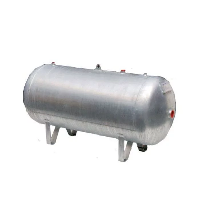 Réservoir d’air horizontal en acier galvanisé à chaud intérieur et extérieur avec capacité de 200 litres et livré avec certificat d’épreuve.