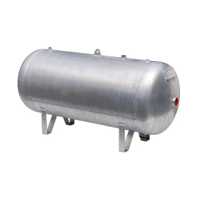 Réservoir d’air horizontal en acier galvanisé à chaud intérieur et extérieur, réservoir avec une capacité de 500 litres.