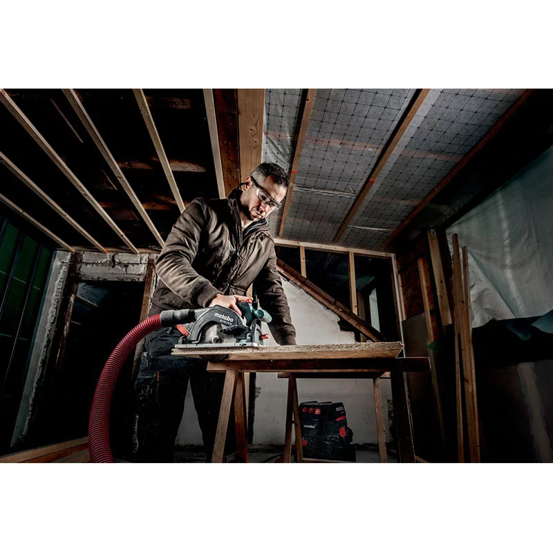 Changer la lame est simple et rapide grâce au système de verrouillage. La scie est aussi compatible avec un rail de guidage pour encore plus de précision. Scie circulaire électrique Ø 165 mm METABO