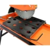 Scie de maçon sur table, Norton Clipper CM 42 COMPACT. Machine légère, compacte, munie d’un chariot extra large, permettant d’effectuer des coupes précises dans les matériaux de maçonnerie, dalles, dalles gravillons, pavés ou carrelages. Livrée avec un disque diamant Ø 350 mm. Caractéristiques scie : Marque: Norton Clipper (France) Tension : 230 V Puissance : 2,2 kW Fusible / Générateur : 16 A / 6 kVA Diamètre x alésage maxi. : Ø 400 x 25,4 mm Profondeur de coupe maxi. à 90° / 45° : 135 mm / 94 mm Longueur de coupe maxi : 780 mm Hauteur maxi. Du matériau : 200 mm Dimensions de la table : 500 x 540 mm Vitesse de l’outil maxi. : 2800 min-¹ Vibrations mains-bras : < 2,2 m/s² Pression sonore : 80 dB(A) Dimensions : L 1187 X L 620 X H 1360 mm Dimensions pieds repliés : L 1187 X L 620 X H 740 mm Poids : 90 kg Avantage produit : Profondeur de coupe réglable Pied repliables avec poignée de serrage et roues de transport Permet de couper une dalle de 60×60 cm en deux de 30 cm Poignée ergonomique Guide de coupe réglable (degré) Bénéfices utilisateur : Chariot grande largeur avec chassis long et renforcé Très bonne stabilité des matériaux et du chariot pour une coupe en toute sécurité Manipulation et nettoyage facile Accès aisé pour démontage du disque Longévité accrue Coupe précise sans accessoire additionnel