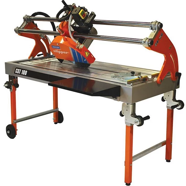 Scie à maçon professionnel, avec pieds pliants et roues de transport facilitant le transport et le rangement. Table en aluminium robuste et facile à nettoyer. Tête de coupe inclinable et pendulaire. Haute précision de coupe grâce au guide de coupe. Marque : Norton clipper Tension / Puissance W : 230V 1~ / 2,2kW Fusible/Générateur : 16A / 5 kVA Diamètre x alésage (mm) : Ø 350 x 25,4 Dimensions (LxLxH) (mm) : 1400 x 660 x 1440 Dimensions (LxLxH) (pieds repliés)(mm) : 1400 x 660 x 770 Tête inclinable : 0 à 45° Vitesse de l’outil maxi. : 2800 min-1 Profondeur de coupe maxi. (mm) : 110 Longueur de coupe maxi. (mm) : 1000 Hauteur maxi. du matériau (mm) : 160 Dimensions de la table (mm) : 1250 x 660 Vibrations mains-bras : < 2,5 m/s² Puissance / Pression sonore : 87 dB (A) / 73 dB (A) Poids : 120 kg