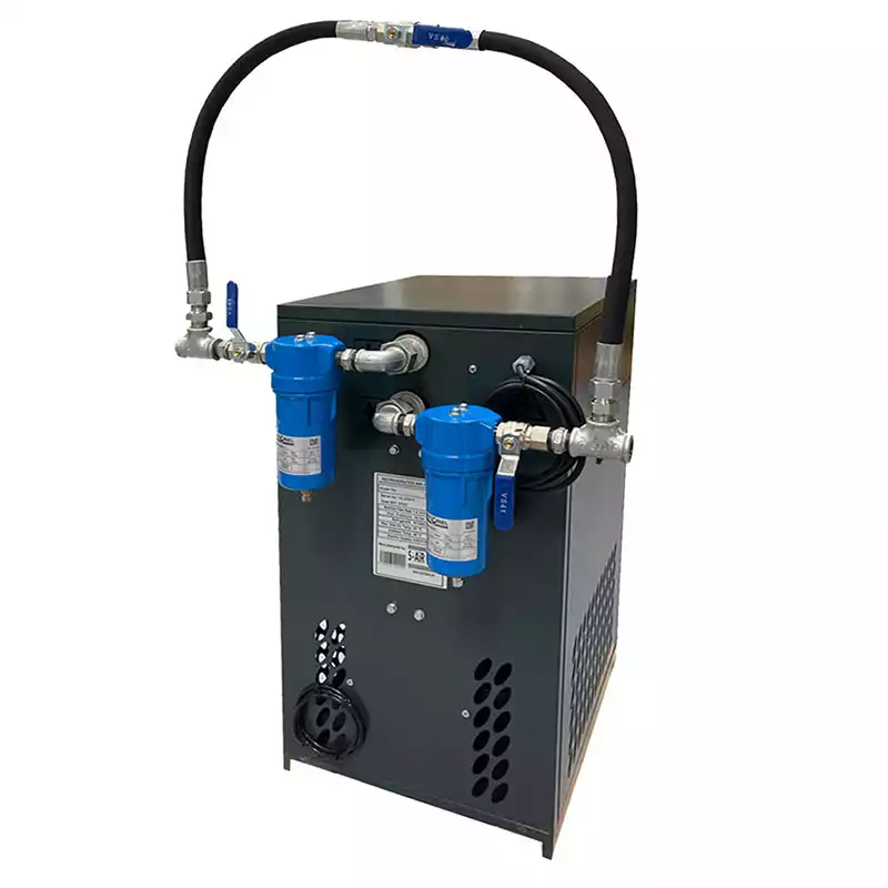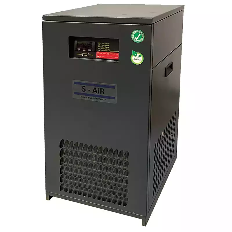 Sécheur d’air par réfrigération à détente directe. Sécheur facile à utiliser, démarrage sans programmation. Séchage immédiat sans délai. Visualisation de la température de l’échangeur. Attention les Filtres, raccords et By pass sont en option.