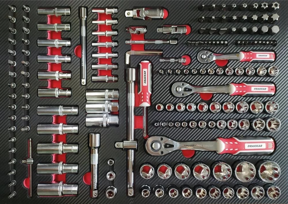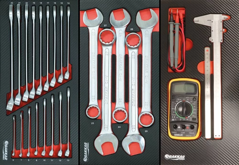 La servante Drakkar est conçue pour une organisation optimale grâce à ses 11 modules en mousse carbone de haute qualité.