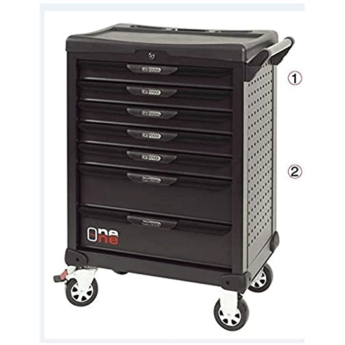 Servante d’atelier KS TOOLS offrant un rangement pour outils grâce à ses 7 tiroirs. Servante idéale dans un cadre professionnel. Équipée de système de fermeture centralisée par serrure. Perforations normalisées pour fixation d’accessoires Système anti basculement Plan de travail avec tapis en mousse 4 roues robustes Ø 125 mm dont 2 directionnelles avec frein.