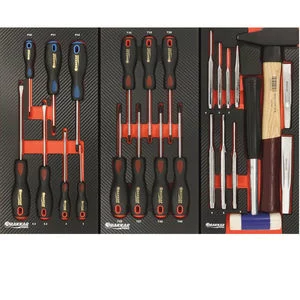 Servante d’atelier 7 tiroirs 170 outils DRAKKAR. Cette servante est équipée d’un système de fermeture centralisée par serrure, d’un plan de travail recouvert d’un tapis en mousse, 4 roues robustes dont 2 directionnelles.