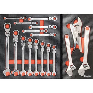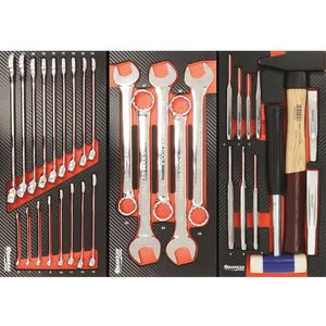 Servante d’atelier 7 tiroirs 207 outils DRAKKAR. Cette servante est équipée d’un système de fermeture centralisée par serrure, d’un plan de travail recouvert d’un tapis en mousse, tiroirs montés sur roulements à billes, et de 4 roues robustes dont 2 directionnelles.
