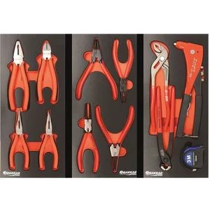 • Module: 1 pince universelle 180 mm, 1 pince droite bec ½ rond 160 mm, 1 pince coudée bec ½ rond 160 mm, 1 pince coupante