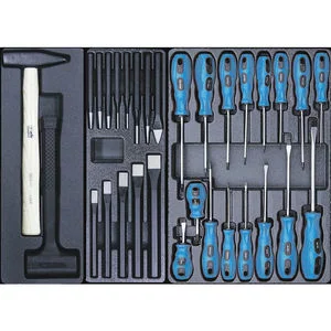 Servante d’atelier 7 tiroirs composée de 243 outils STILKER. Cette servante est dotée d’un plan detrvail recouvert d’un tapis de mousse, d’une fermeture centralisée et de tiroirs montés sur roulements à billes. Caractéristiques : Marque : STILKER Pièces dans le set : 243 outils Nombre de tiroirs : 7 Nombre de roues : 4 Charge maxi par tiroir : Petit : 15 kg – Grand : 30 kg Dimensions intérieures des tiroirs : 565 x 405 mm Diamètre des roues : Ø 120 mm Dimensions : 680 x 460 x 1005 mm Poids : 100 kg Module 1 : 4 pinces circlips Module 2 : 3 clés mixtes (27-30-32mm) Module 3 : 17 douilles de 6 à 22mm 2 douilles à bougies ( 16-21mm) 2 rallonges (75-150mm) 1 rallonge coulissante 1 cardan 1 clé à cliquet 72 dents Module 4 : 12 douilles Torx® 1/4″ – E4 à E8 3/8’’ – E10 à E20 3 douilles tournevis Torx® ½ ‘’ (T55-T60-T70) 2 Douilles porte-embout ¼’’ et 3/8’’ 7 embouts Torx® ¼’’ alésés (TT8 à TT30) 9 embouts Torx® 3/8’’ (30mm-T10 à T55) 6 embouts Torx® 3/8’’ (75mm-T25 à T60) 13 clés mâles coudées Torx® (T8 à T60) Module 5 : 16 tournevis 5 tournevis plats : 6×38-3×75-5×150-6×125-8×150 4PH : 6×38-3×75-5×100-6×125 5 Torx® : T10-T15-T20-T25-T30 2 PZ : 3×75-5×100 Module 6 : 1 clé cliquet 72 dents 1 tournevis 3 rallonges (50-100-150mm) 1 rallonge coulissante 23 embouts (3 plats, 3 Ph, 8 Tx, 6 Hex, 3Pz) 13 douilles de 4 à 14 mm 9 clés hexagonales (1,5 à 10 mm) 1 cardan 9 douilles longues (5 à 13 mm). Module 7 : 20 douilles 1/2″ (CR-V) de 8 à 32 mm 2 rallonges (125mm et 250mm) 1 adaptateur pour rallonge (3/8″ (F)x1/2″ (M)) 1 clé à cliquet 72 dents 1 cardan Module 8 : 1 pince coupante 1 pince universelle 1 pince bec long Module 9 : 1 pince multiprise 250mm 1 pince étau 250mm Module 10 : 16 clés mixtes de 6 à 24mm Module 11 : 11 clés plates à fourche (de 6×7 à 30x32mm) Module 12 : 1 marteau 1 maillet Module 13 : 13 pièces (burins et pointeaux) Module 14 : 3 clés à molette Module 15 : 8 clés à pipe (8 à 19mm)