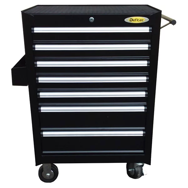 Servante d’atelier DEFITEC avec 7 tiroirs et 4 roues dont 2 directionnelles avec frein, tiroirs anti-dasculement, serrure centralisée et bac latéral.