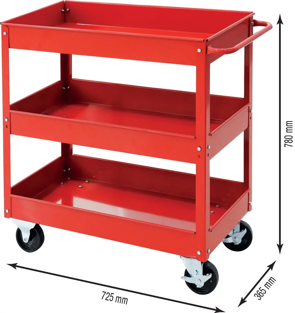 Chaque plateau de cette servante mesure 705 x 350 x 85 mm et peut supporter jusqu’à 50 kg, vous offrant ainsi un espace de rangement spacieux et sécurisé. Que ce soit pour des outils manuels, des vis, des accessoires ou des petites machines, ce serviteur saura garder vos affaires en ordre et à portée de main.