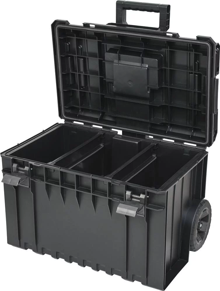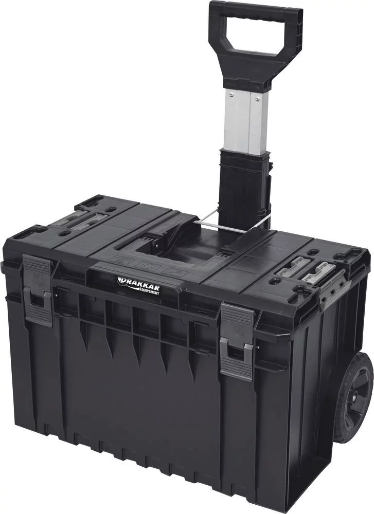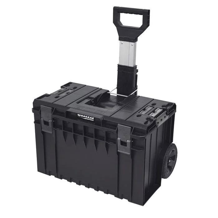 Servante sur roues COBOX avec 1 boite de rangement. Équipée d’une poignée télescopique, d’un axe en métal, de grandes roues avec couche de caoutchouc. Résistance à la pénétration de l’eau et de la poussière grâce au joint élastique dans le couvercle – Certificat IP 66.
