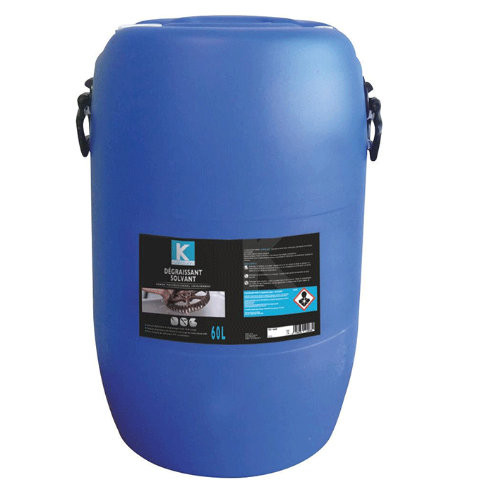 Solvant dégraissant tonnelet de 60 Litres pour fontaine de nettoyage. Utilisation polyvalente au pinceau, en pulvérisation ou en trempé. N’attaque pas les peintures, joints plastiques ou caoutchouc. Séchage sans résidu d’évaporation. Point éclair > 61°C.