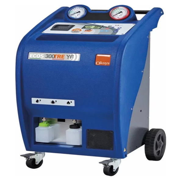 La station de climatisation OKSYSGEN+ est une solution entièrement automatique et innovante pour la gestion des systèmes de réfrigération, idéale pour les véhicules hybrides, électriques, commerciaux et agricoles. Elle fonctionne sans robinets manuels, offrant un cycle de travail fluide et sans intervention manuelle. La station garantit une récupération de réfrigérant de haute précision. Elle dispose d’une fonction d’injection automatique d’huiles avec une balance intégrée (+/- 5g).