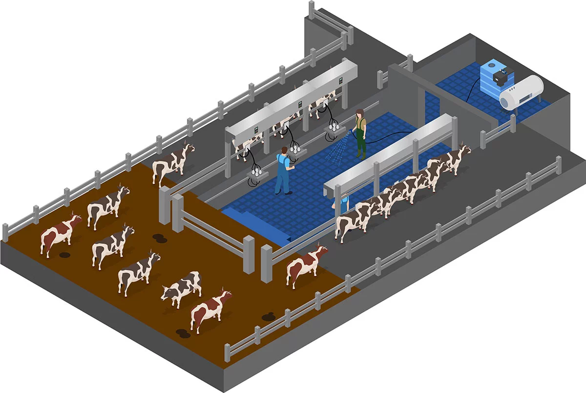 Pour une salle de traite de 20 postes, la station peut économiser jusqu’à 500 litres d’eau par jour et 180 m³ par an.