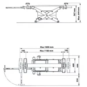 Permet de lever rapidement et facilement, les véhicules VL et utilitaires jusqu’à 2,2 Tonnes. Elévation latérale pour lever le véhicule aussi facilement.