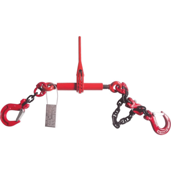 Système d’arrimage complet avec tendeur, chaîne, crochet, raccourcisseur.