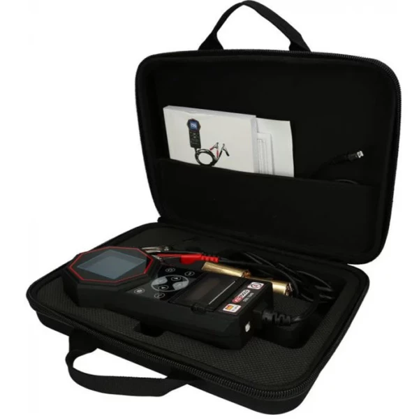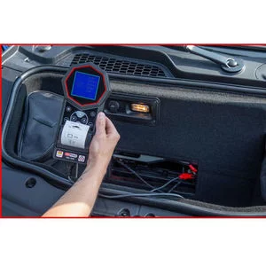 Testeur de batterie adapté pour batteries 12 volts (plomb, gel, alphaline, AGM, VRLA…). Pour vérifier l’état de la batterie, la charge, la résistance et la capacité au démarrage. Imprimante thermique intégrée. – Branchement sur la batterie à l’aide de deux pinces crocodiles isolées. Fonction de contrôle pour batterie start & stop. –