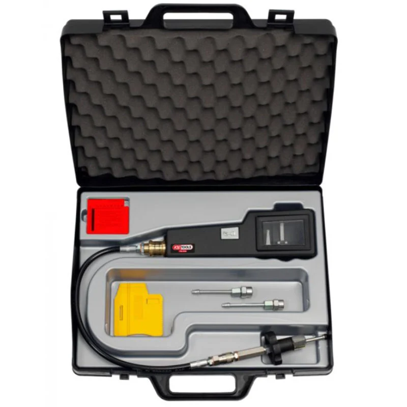 Testeur de compression et enregistreur pour moteur Diesel de la marque KS TOOLS. Ce produit à la possibilité d’enregistrer 8 essais + 2 en réserve. Une connexion est possible à l’aide de fausses bougies ou de faux injecteurs.