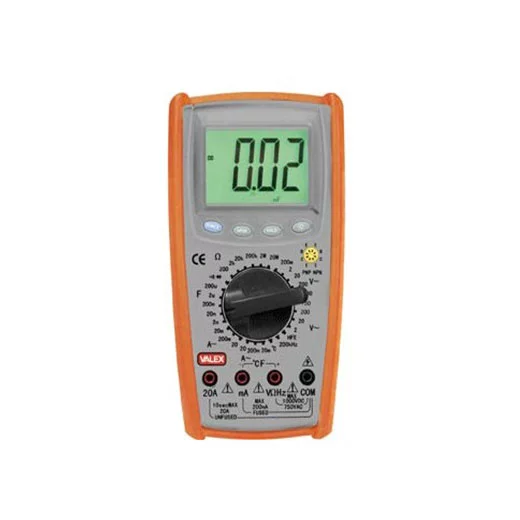 Testeur de courant digital, mémorisation des données, avertisseur sonore, livré avec câbles et fiches.