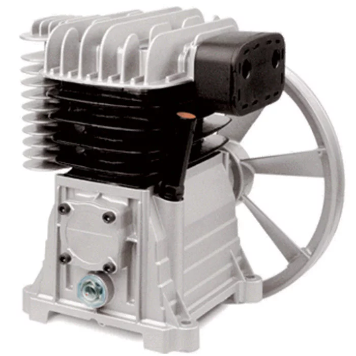 Tête de compresseur ABAC, chemisé fonte avec volant et filtre d’aspiration.