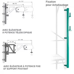 Le point de chargement relevé simplifie le passage des matériaux par les fenêtres. Ceci permet le soulèvement de matériaux encombrants ou lourds, sans risquer de les heurter à la structure. Se monte sur tous les étais et supports IMER.