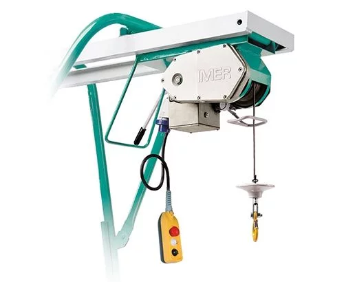 Treuil IMER 300 kg en monophasé avec télécommande de 1,50 mètre avec 3 boutons. Treuil équipé d’un crochet et d’un cadre avec 4 roue en aluminium. Elévateur à chevalet conçu pour assurer une fiabilité et une durée d’utilisation maximale.