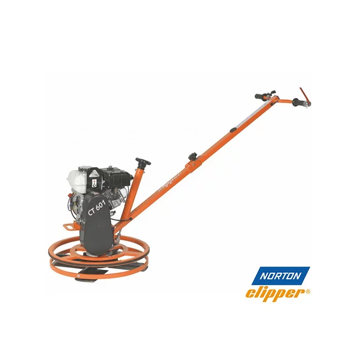 La CT601 MP est une machine légère et maniable, idéale pour les petites surfaces et le lissage le long des murs, distance du mur 10 mm. Equipée de Poignée homme-mort, anneaux de protection des pales, contrôle mécanique de l’inclinaison des pales, bras pliant et anneau de levage. Caractéristiques truelle mécanique: Marque: NORTON CLIPPER Puissance: 2,9 Kw Outils inclus : pales de finition et plateau Energie: essence Type de moteur: HONDA GX 120 Diamètre de rotation du disque: 600 mm (Sens des aiguilles d’une montre) Diamètre de carter du disque: 620 mm Distance du mur: 10 mm Controle d’inclinaison des pales: mécanique Vibrations mains-bras : < 2,5 m/s² Puissance sonore : 93 db(A) Pression sonore : 81 db(A) Dimensions (LxLxH) : 1560 x 650 x 1060 mm Poids : 62 kg Avantages produit: Poignée homme-mort Anneaux de protection des pales Contrôle mécanique de l'inclinaison des pales Bras pliant et anneau de levage Bénéfices utilisateur: Sécurité utilisateur Sécurité utilisateur tout en conservant une bonne visibilité Réglage précis pour une finition parfaite Facilité de transport Meilleure finition