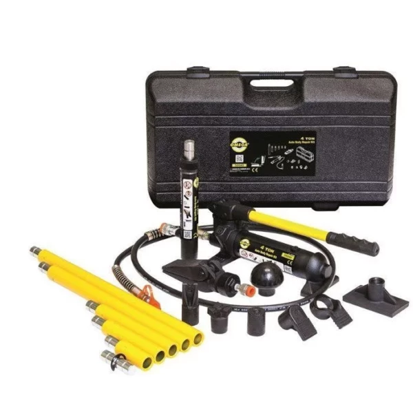 Vérin hydraulique Omega pour travaux de carrosserie d’une capacité de 4 tonnes. Ce vérin de carrossier est livré dans un coffret contenant tous les accessoires. La pompe peut être utilisée verticalement ou horizontalement.