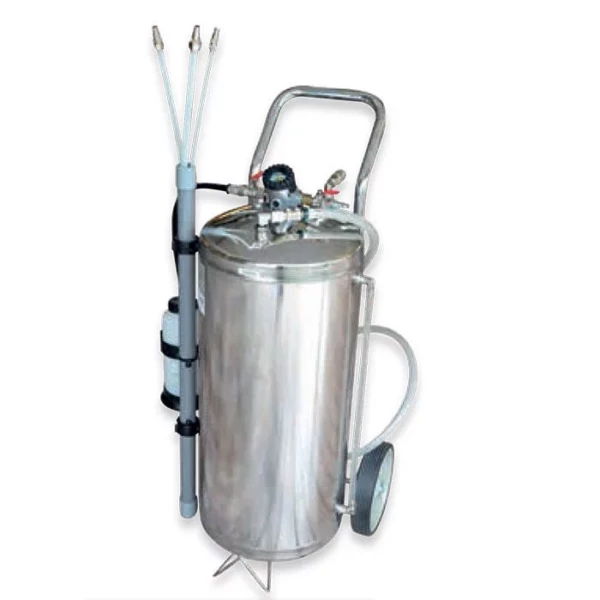 Vidangeur de carburant. Pour vidanger suite a une erreur de remplissage essence confondu avec le diesel,  Pour déposé une pompe à carburant immergée, changer ou contrôler la jauge à carburant , rincer le réservoir… Réservoir mobile [ sur roues] de 45 litres pour vider complétement les réservoirs et canalisations essence aussi bien que diesel Livré avec 2 cable de masse antistatique, un tuyeau anti débordement et 3 sondes a carburant  La vidange peut se faire via l’orifice de remplissage du réservoir ou les canalisations de carburant  Répond aux normes Atex.